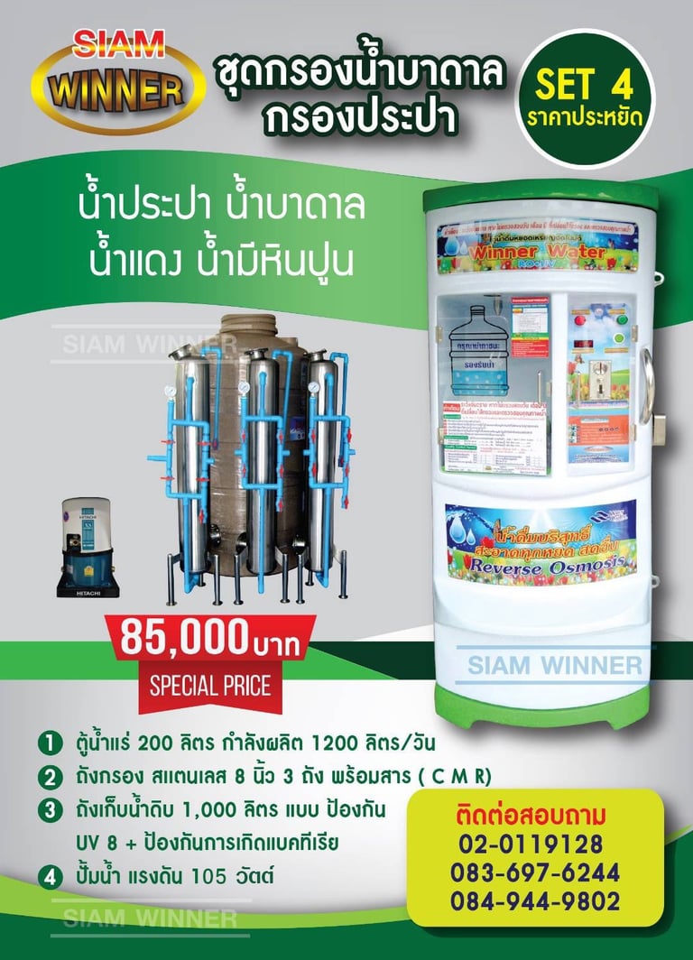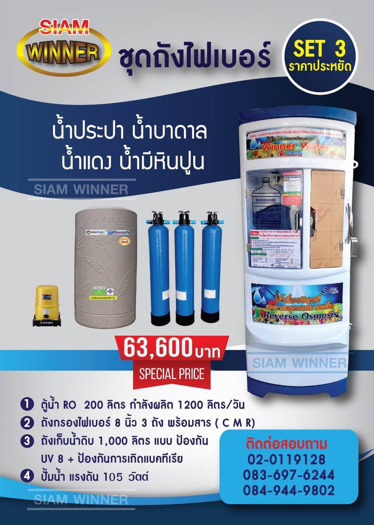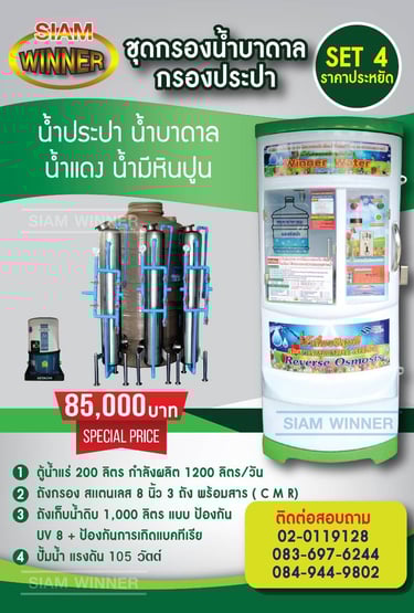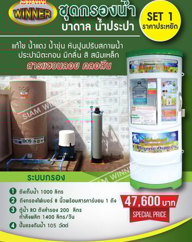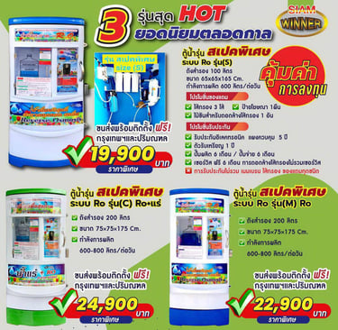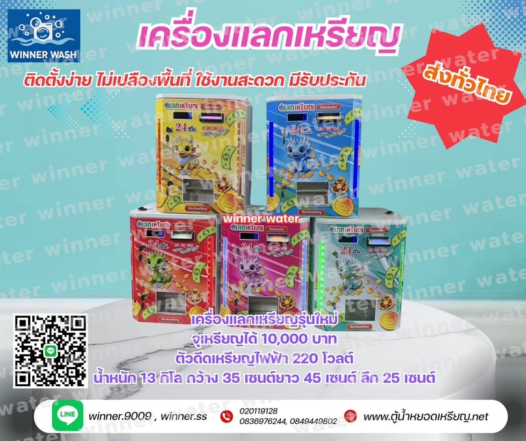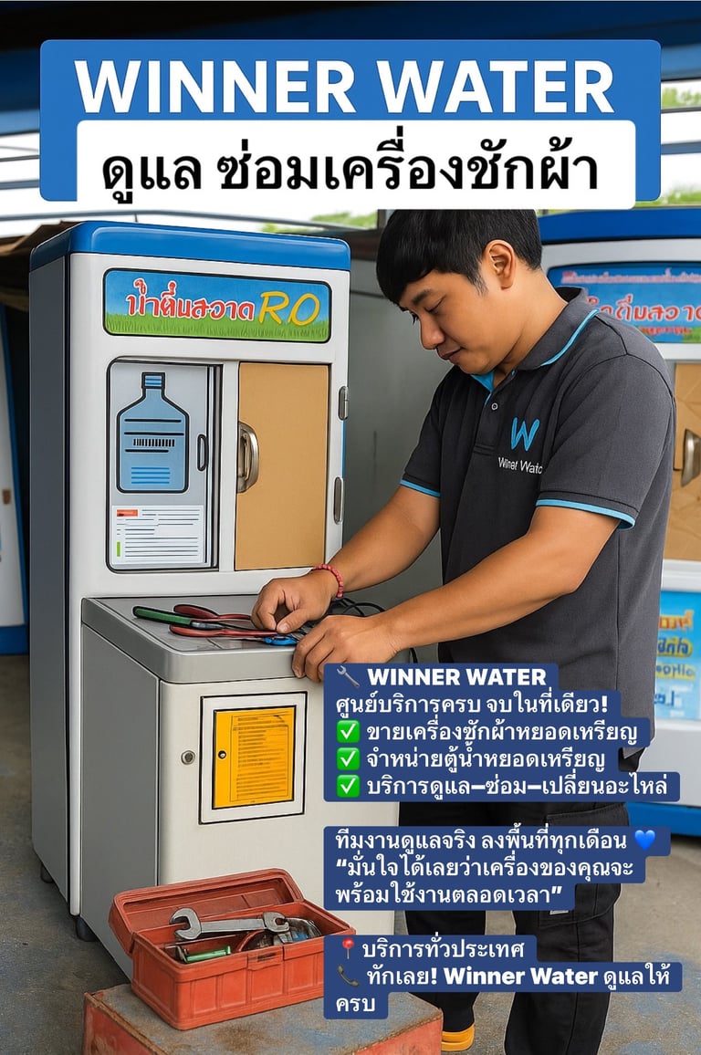 สยามวินเนอร์ ศูนย์บริการ จำหน่าย ติดตั้ง ซ่อม ตู้น้ำดื่มหยอดเหรียญ เครื่องซักผ้าหยอดเหรียญ ตู้เติมเงินออนไลน์ ตู้น้ำมันหยอดเหรียญ บริการอะไหล่ตู้น้ำ และ ซ่อมตู้น้ำหยอดเหรียญ ผลิตตู้น้ำดื่มหยอดเหรียญและให้บริการหลังการขาย ตรวจเช็คทุกขั้นตอน บริการรวดเร็ว เพื่อความคุ้มทุนของลูกค้า ด้วยทีมงานมืออาชีพพร้อมผู้เชี่ยวชาญประสบการณ์กว่า 10 ปี สินค้าดี มีคุณภาพ ราคาถูก พร้อมบริการหลังการขาย จากผู้ผลิตโดยตรง
